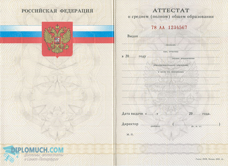 - Комплект: Аттестат + приложение;